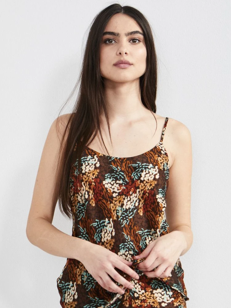 Das Trägertop aus Seidensatin hat verstellbare Spaghetti-Träger. Das feine Material aus 100% Seide fällt weich und fließend und hat durch den natürlichen Seiden- Schimmer eine luxuriöse Ausstrahlung. Es ist in den Größen 36 bis 50 erhältlich (deutsche Damen- Größen).