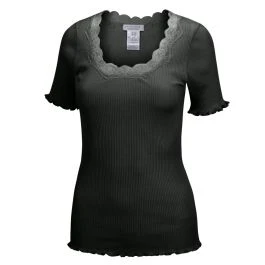 Die Hochwertigkeit des Stoffes (70% Seide, 30% Baumwolle) wird durch den zeitlosen Schnitt und die Verzierung mit floraler Wäschespitze (100% Polyester) unterstrichen. Das Unterhemd hat kurze Ärmel und eine unkomplizierte Passform. Es kann als Oberbekleidungsteil, Unterwäsche oder auch als Nachtwäsche und Homewear getragen werden.