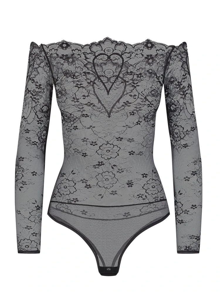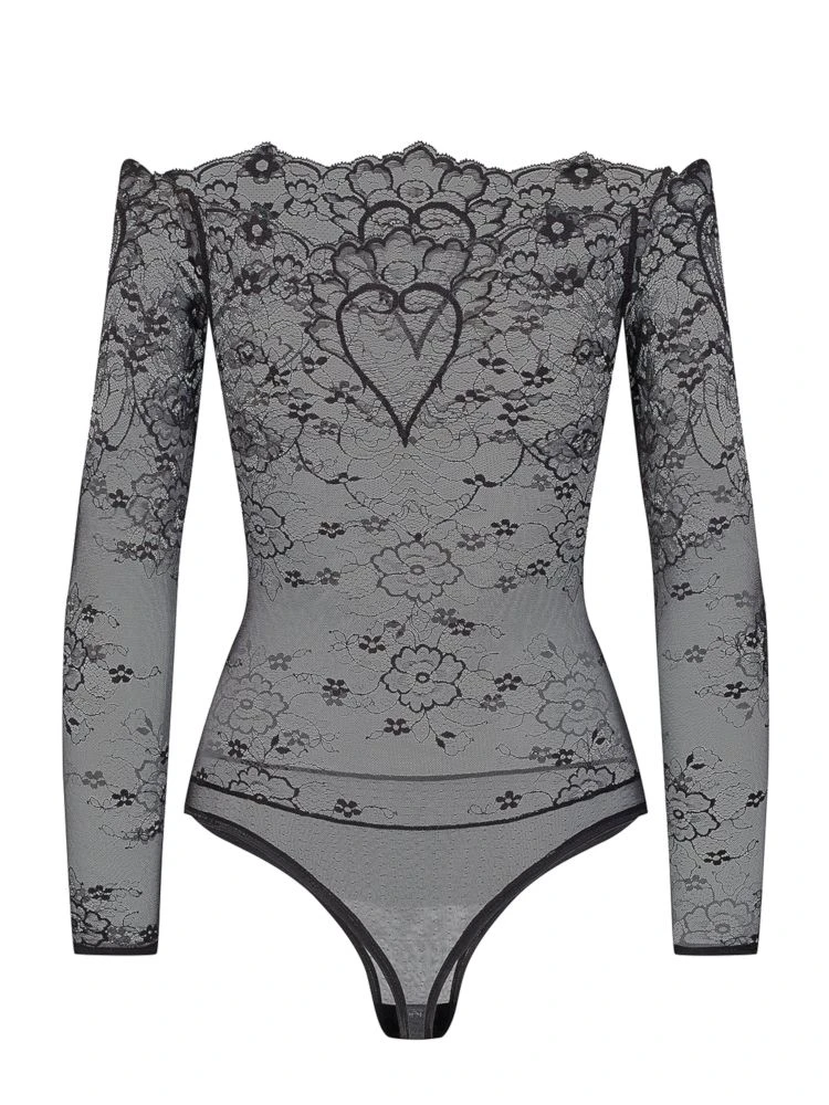 Langarm Body Coeur aus Spitze schwarz von Cadolle