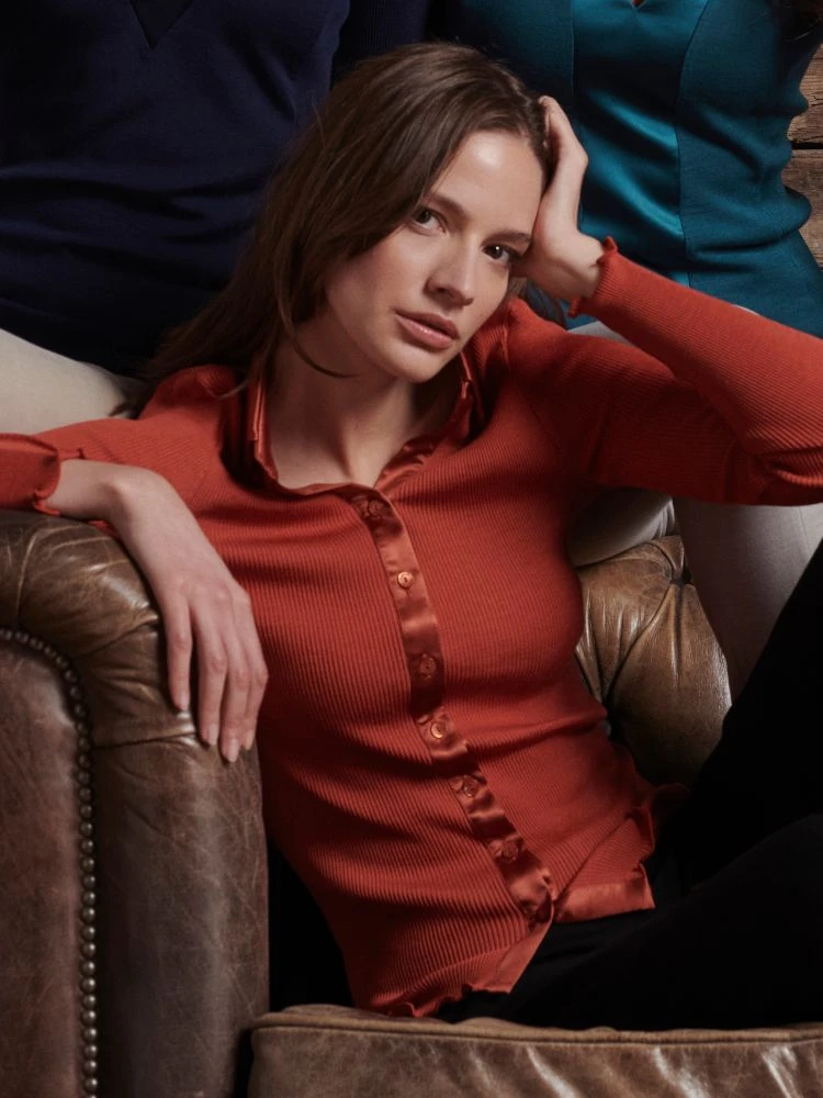 Merinowolle-Seide Langarm-Cardigan paprika von Oscalito