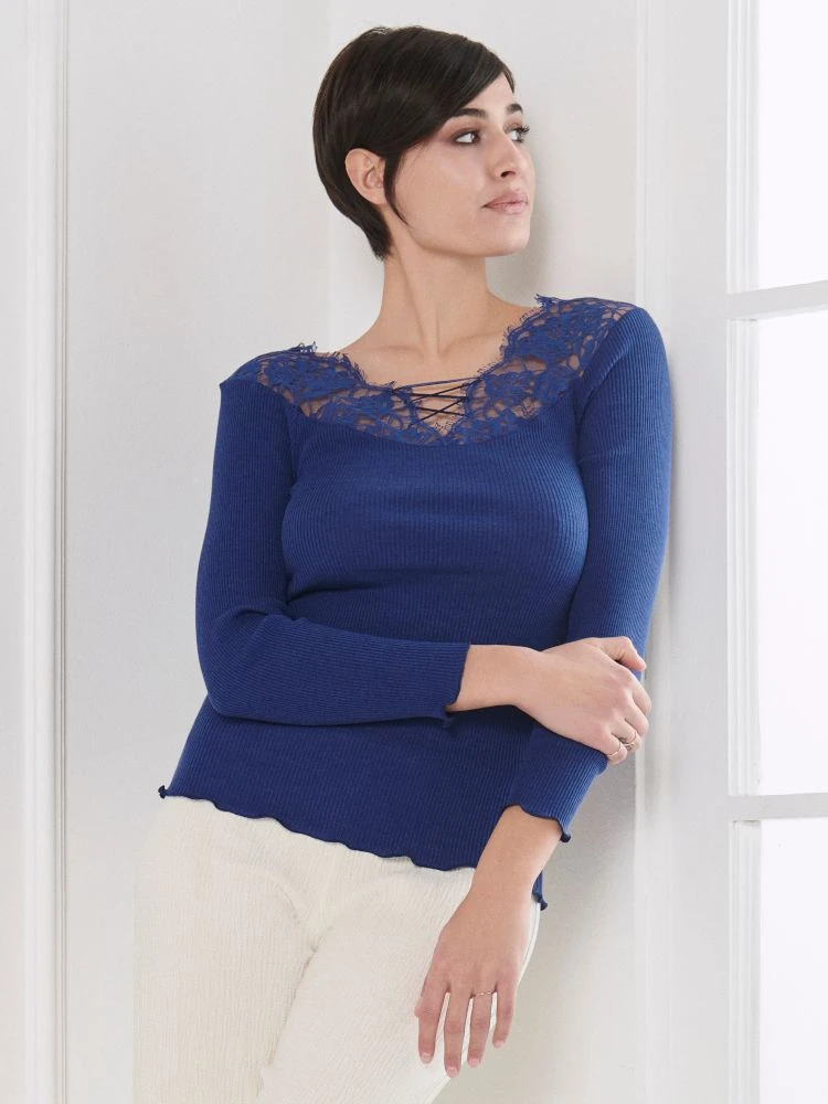 Merinowolle-Seide Langarm-Shirt royalblau von Oscalito