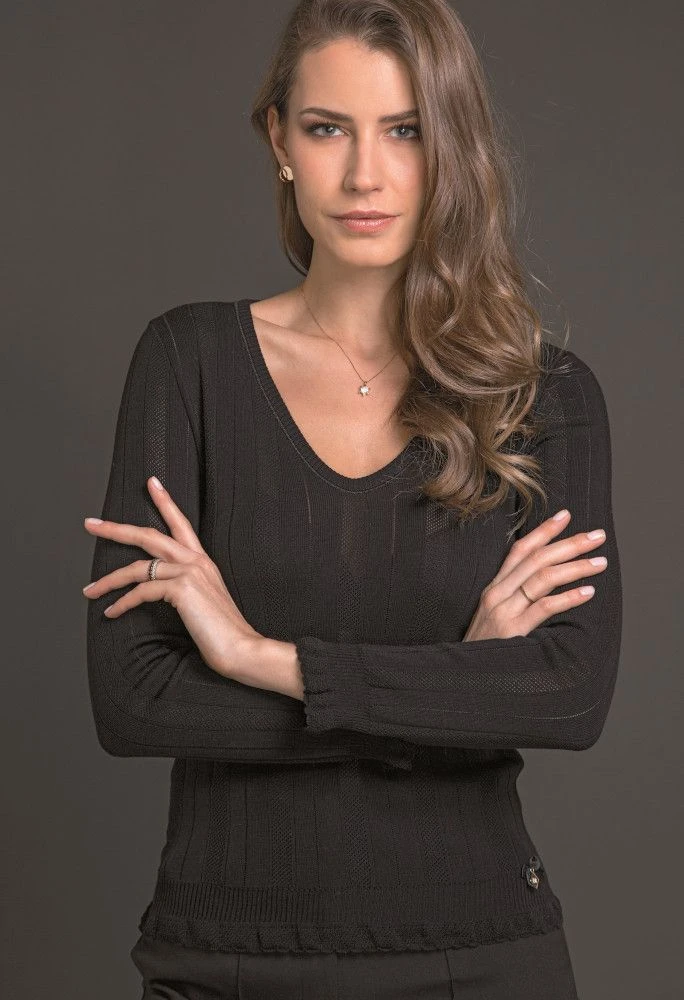 Merinowolle Seide LANGARM SHIRT Breite Rippe Von Artimaglia