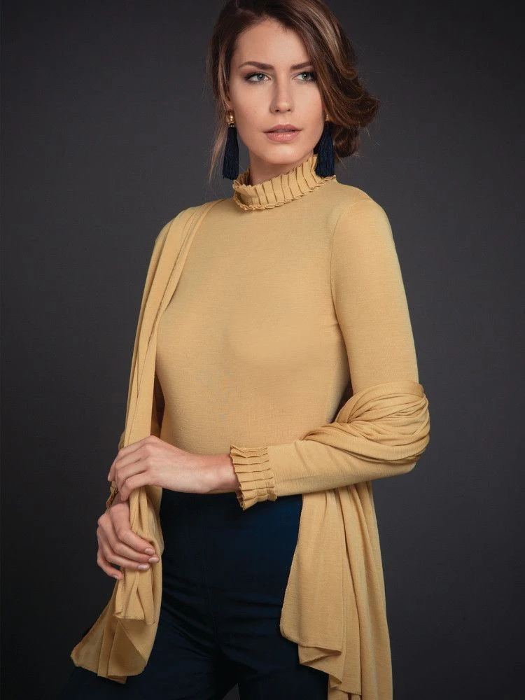 Das Merino Wolle-Seide Tuch von Artimaglia ist in Einheitsgröße ca. 75 x 185 cm erhältlich. Aus dieser Kollektion sind verschiedene Ergänzungsteile separat erhältlich.