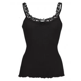 Das feine Träger-Top Wolle-Seide besteht aus einem besonders hochwertigen, rundgestrickten und gerippten Jersey aus 70% extrafeiner Merinowolle und 30% Seide. Dieses edle Shirt mit verstellbaren Trägern ist ca. 60 cm lang. Der untere Saum ist wellig umkettelt. Am Ausschnitt ist dieses Shirt mit einer exquisiten Spitze aus der Schweiz gearbeitet. Das Material ist eine rundgestrickte „Schlauchware“ und daher ist dieses Shirt seitlich nahtlos.
