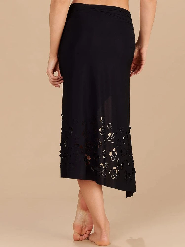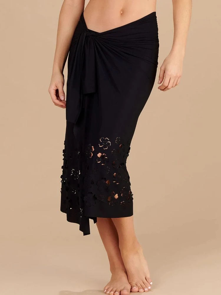 Dieser Pareo der französischen Luxus Beachwear Marke Pain de Sucre hat ein mit mit Lasercut ausgeschnittenes Blumenmuster. Er ist in weiß (blanc), blau, grün oder schwarz (noir) zu haben. Das Material ist ein leichtes Microfaser Gewebe, mit Lasercut Kanten.