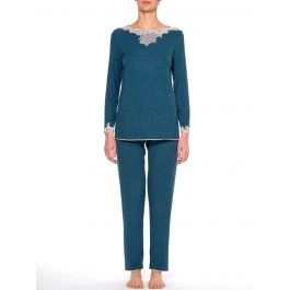 Der Pyjama Megan von Imec ist aus einem besonders weichen und hochwertigen Modal Feinjersey in Kombination mit exquisiter Spitze gefertigt. Die weiche Faser ist angenehm hautsympathisch und fällt elegant und fließend. Durch den Elasthan Anteil wird der Tragekomfort verbessert.