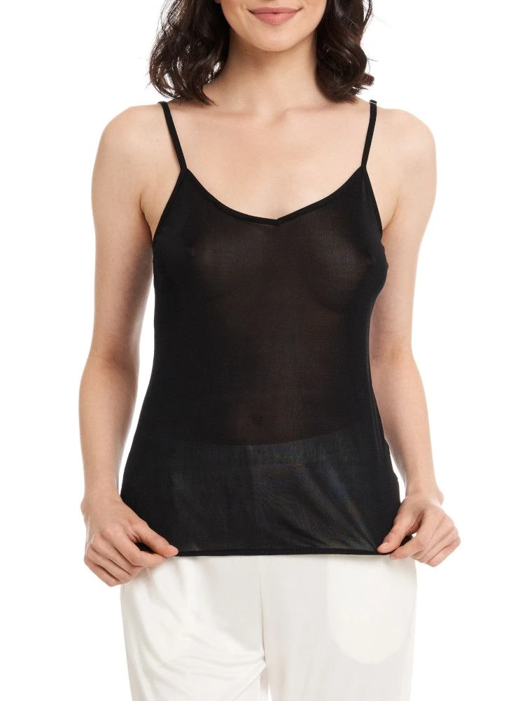 Dieses Spaghetti-Träger Top aus reiner Seide hat verstellbare feine Spaghetti- Träger. Die Länge ist ca. 65 cm. Es kann als Top oder Unterhemd verwendet werden – bitte beachten Sie, dass diese Materialqualität nicht blickdicht ist!