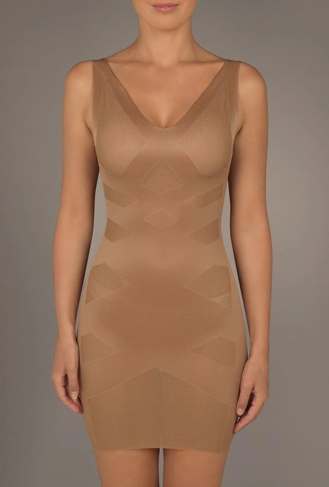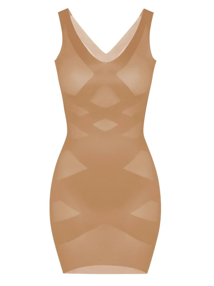 Das Shapewear Kleid Clotilde 69 von Pain de Sucre Suggest ist ein schickes Unterkleid mit figur formendem Effekt. Dieses edle Shaping-Kleid ist mit seinem Muster aus weicheren und festern Bereichen optisch so attraktiv, dass es sogar als sexy Minikleid getragen werden könnte… Das Shapewear Kleid besteht aus elastischer Microfaser, die wenig knittert. Es hat breite Träger und Laser-Cut Kanten. Dieses Unterkleid ist ohne Verschluss gearbeitet und zum Anziehen steigt man mit den Füßen zuerst ein.