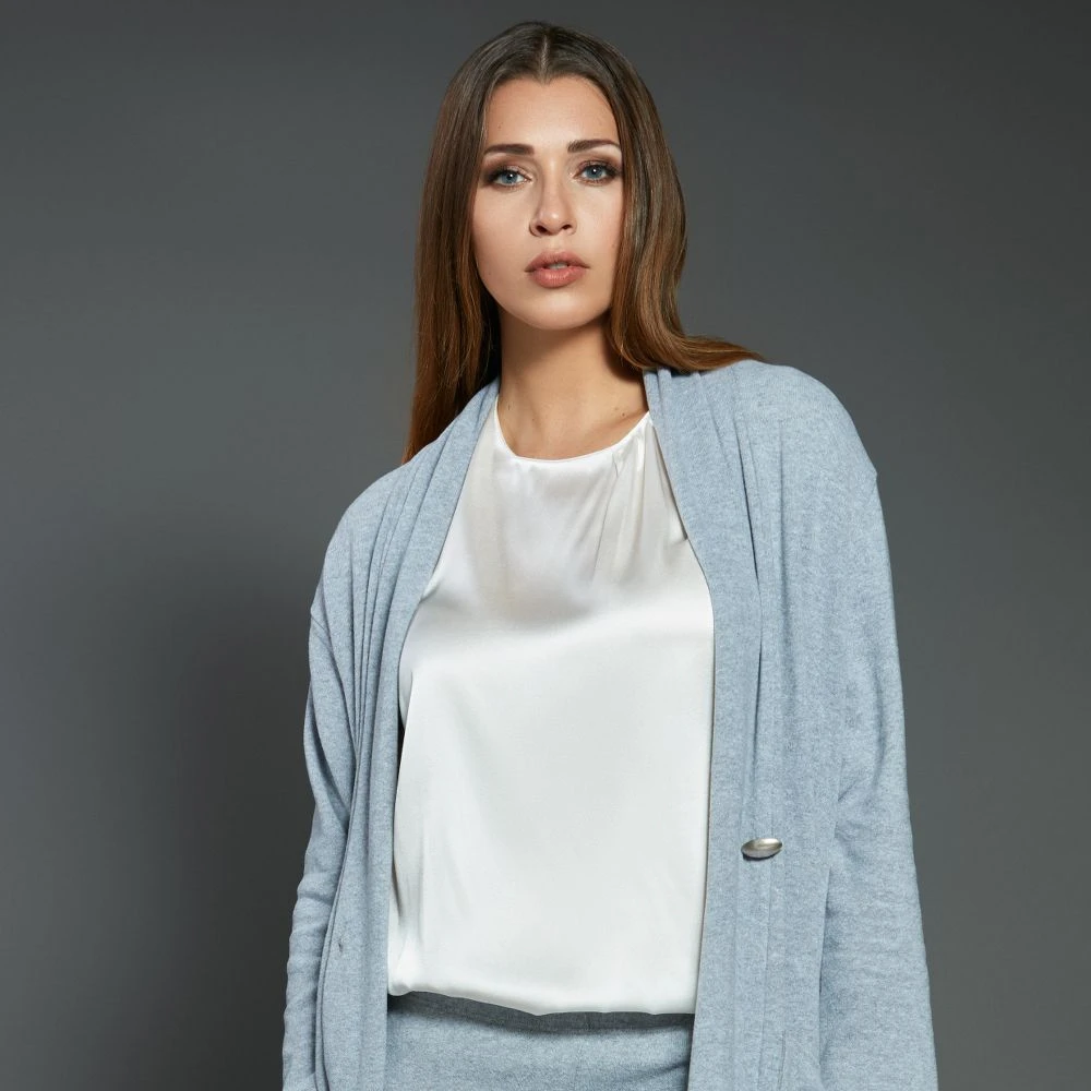 Das Shirt aus Seide mit kurzen Ärmeln kann perfekt mit den anderen Teilen aus der Profumo D’oro – Kollektion von Gattina ergänzt werden, die Sie separat in unserem Onlineshop finden.