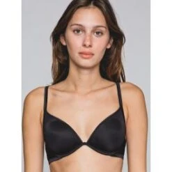 Der BH hat dünn wattierte Schalen-Cups mit Bügel, welche eine glatte Oberfläche haben. Die Cups in leichter Triangel-Form werden bei dieser Marke als „Vollschale“ bezeichnet. Sie haben leichte, nahtlos ausgeformte und anschmiegsame Einlagen und sind mit einem edel glänzenden, gleichfarbigen Satinband eingefasst. Dieser BH ist besonders leicht, trägt nicht auf – und kaschiert dennoch die Brustwarzen. Damit ist er z.B. auch für den Sommer oder als T-Shirt BH geeignet…