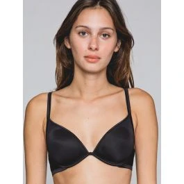 Seitlich und hinten besteht der BH aus Microfaser-Jersey und auf der Rückseite wird er mit einem doppelten Häkchenverschluss (vierfach verstellbar) geschlossen. Die Träger aus glänzendem Satin sind elastisch und in der Länge verstellbar. Der BH ist blickdicht.